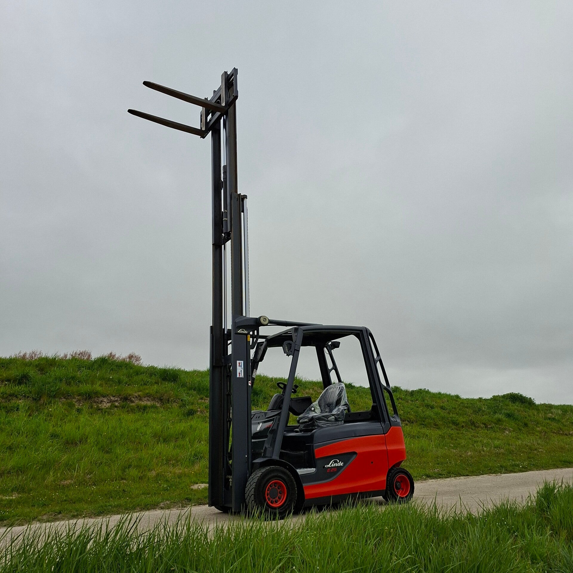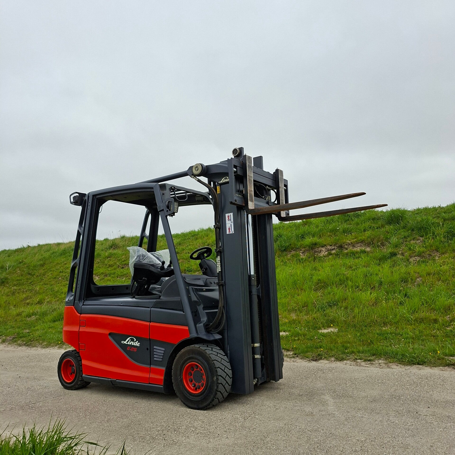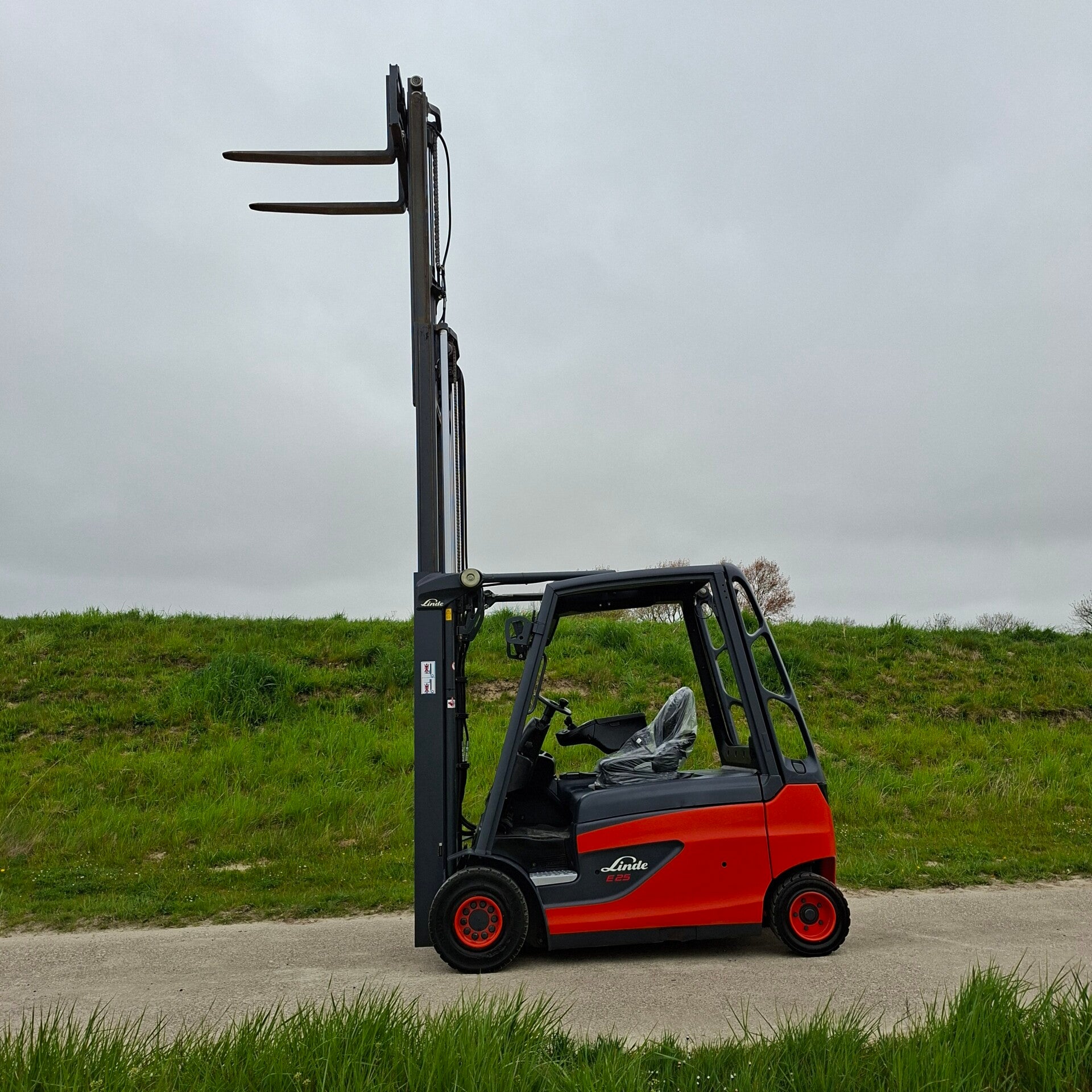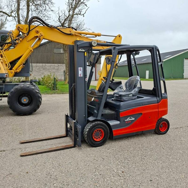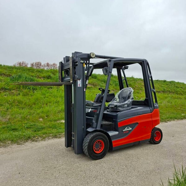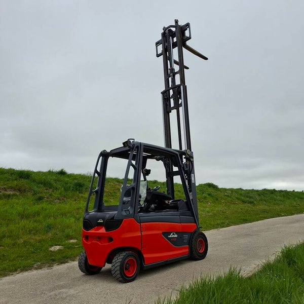 Te koop: Een zeer nette Linde E25 elektrische heftruck met een capaciteit van 2.5 ton, triplomast, freelift en sideshift.
